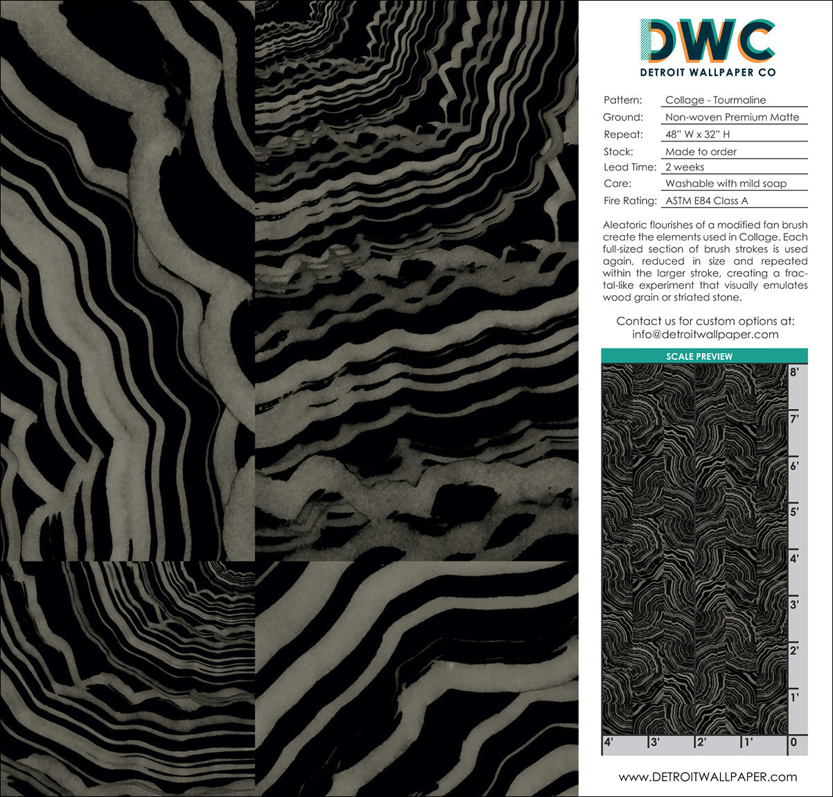 • Produced in the USA on either easily strippable non-woven matte wallpaper that requires paste, or eco-friendly peel and stick wallpaper. Class A safety-rated.