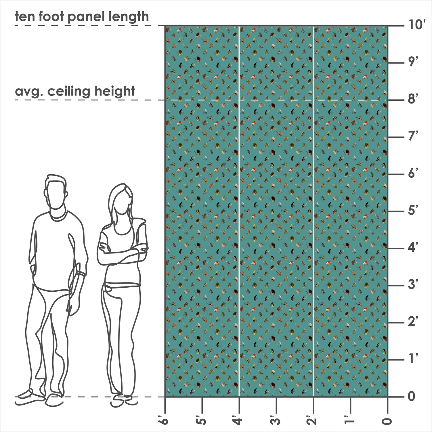• Longer wallpaper rolls were the standard back in the day, and typical of wallpaper mass-produced overseas. Our shorter rolls reduce waste and make installation easier, which reduces costs. No need to worry about archaic wallpaper math factoring the repeat size and loads of waste, our wallpaper panels simply tile up along the wall - easy as that!