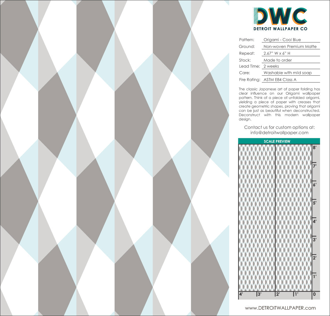 Origami - Cool Blue - Trendy Custom Wallpaper | Contemporary Wallpaper Designs | The Detroit Wallpaper Co.