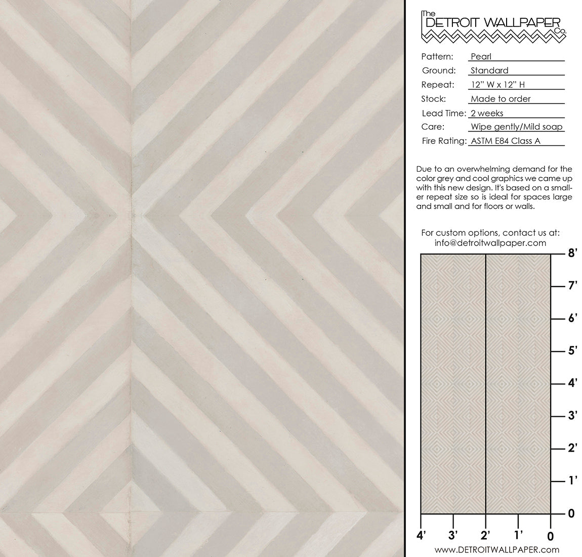 Due to an overwhelming demand for the color grey and cool graphics we came up with this new design. It's based on a smaller repeat size so is ideal for spaces large and small and for floors or walls.