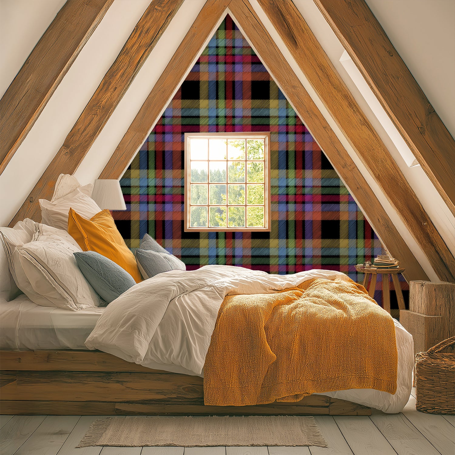 Tartan is a hand-painted plaid wallpaper that reinterprets a classic motif through bold movement and expressive brushwork. Interlaced, angled strokes create a richly layered surface, giving the pattern depth, energy, and a distinctly artisanal character. The painterly approach brings warmth and vibrancy to the design, celebrating the beauty of the hand-crafted process.