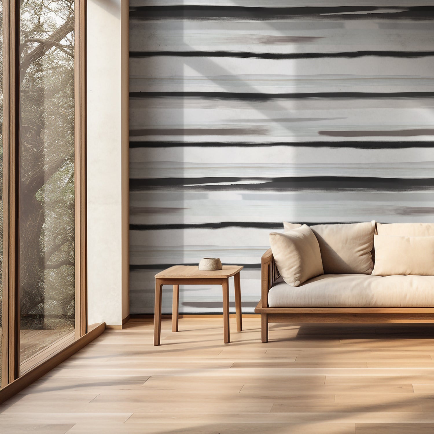 With a palette of soft, tonal hues accented by subtle moments of saturation, Afar offers a refined balance of restraint and expression. Its abstract stripe-like structure makes it remarkably versatile, working effortlessly within modern, minimalist, organic, or eclectic interiors. Calm yet expansive, Afar functions as both a grounding backdrop and a quietly immersive visual experience.