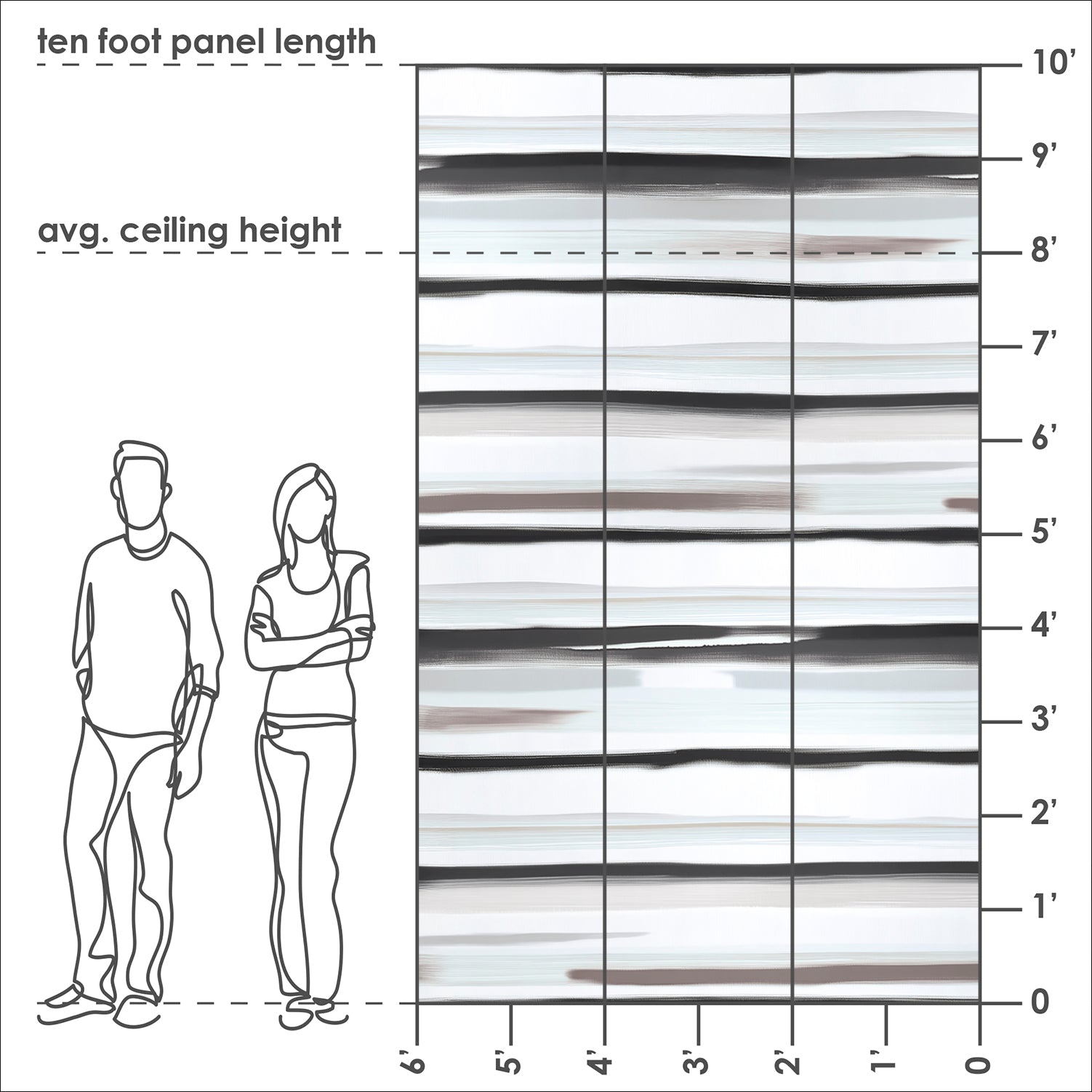 Designed as a large-scale mural that repeats every 96 inches wide by 120 inches tall, Afar is printed in 48-inch-wide panels that form a seamless two-panel repeat. This generous scale allows the horizontal flow of the artwork to unfold naturally across the wall, enhancing the architectural width of a space while maintaining a cohesive, continuous rhythm.