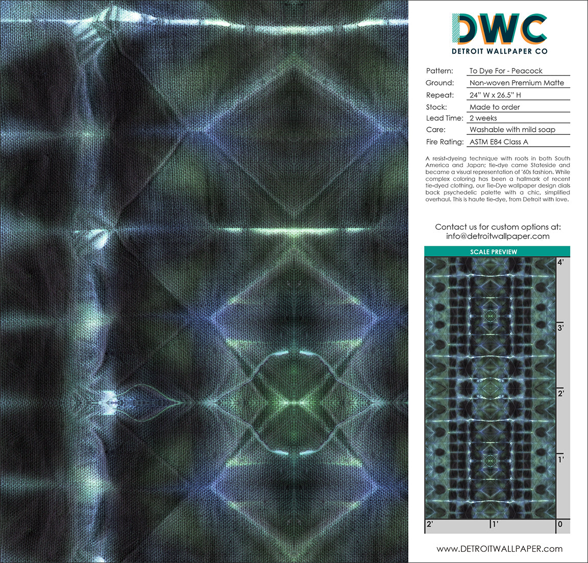 A resist-dyeing technique with roots in both South America and Japan; tie-dye came Stateside and became a visual representation of '60s fashion. While complex coloring has been a hallmark of recent tie-dyed clothing, our Tie-Dye wallpaper design dials back psychedelic palette with a chic, simplified overhaul. This is haute tie-dye, from Detroit with love.