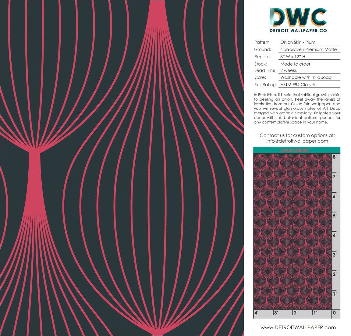 In Buddhism, it is said that spiritual growth is akin to peeling an onion. Peel away the layers of inspiration from our Onion Skin wallpaper, and you will reveal glamorous notes of Art Deco merged with organic simplicity. Enlighten your décor with this botanical pattern, perfect for any contemplative space in your home.