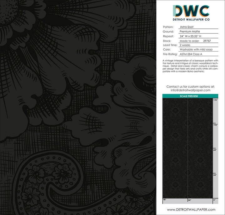 Introducing "Astra," a vintage-inspired wallpaper design that reimagines a classic baroque pattern with the rich texture and allure of traditional woodblock printing techniques. "Astra" captures the intricate details and timeless elegance of baroque artistry, creating a unique wallpaper that resonates with the charm of the arts and crafts movement while remaining perfectly suited to a modern Boho aesthetic. This design is ideal for those who appreciate the fusion of historical craftsmanship with contemporary flair.