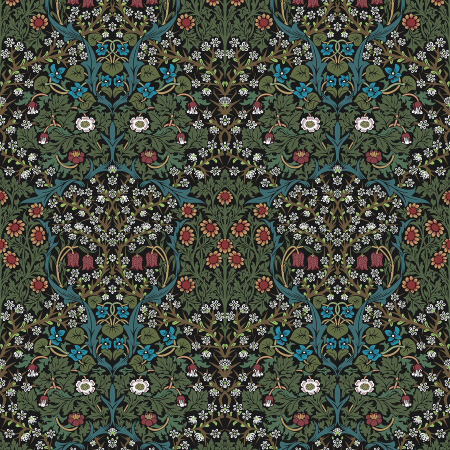 Make a statement and elevate any room with this cozy, sophisticated floral wallpaper. Originally inspired by William Morris, our artists have reimagined this intricate pattern into a unique creation. The rich colors, detailed flowers, thorns, and stems combine to form a charming vintage motif, perfect for infusing your space with a romantic, gothic vibe.