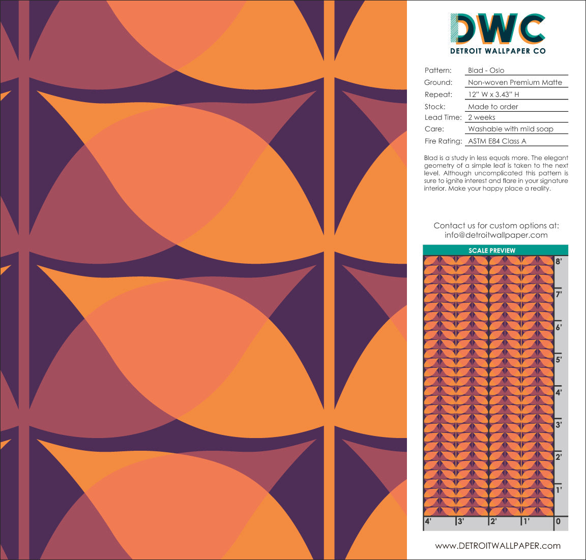 Blad is a study in less equals more. The elegant geometry of a simple leaf is taken to the next level. Although uncomplicated this pattern is sure to ignite interest and flare in your signature interior. Make your happy place a reality.