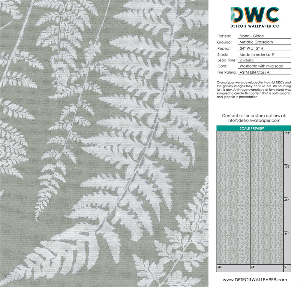 • Produced in the USA on easily strippable, metallic grasscloth wallcovering. Class A safety-rated.