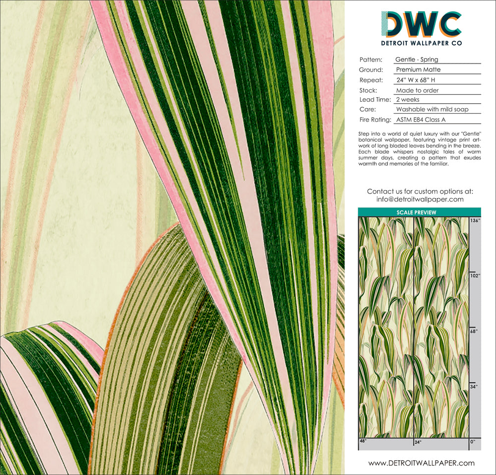 Transform your space into a haven of understated elegance with our "Gentle" botanical wallpaper. This design is a celebration of quiet luxury, featuring vintage-inspired artwork of long-bladed leaves gracefully bending in an unseen breeze. Each leaf seems to sway softly, evoking the soothing whispers of a warm summer day and transporting you to a world of calm and serenity.