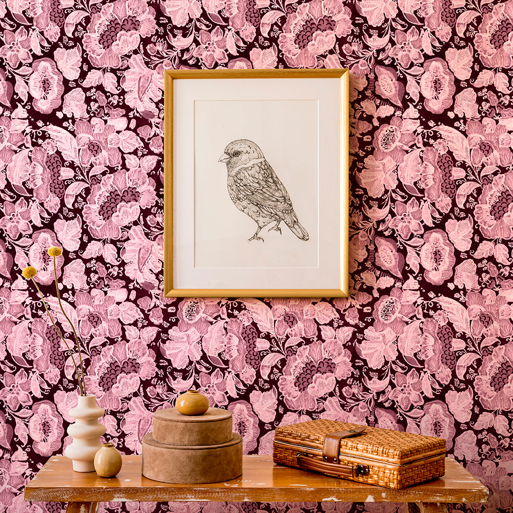 Introducing "Kensington," a stunning wallpaper that brings vintage botanical woodblock print motifs to the forefront, showcasing the timeless beauty of traditional craftsmanship. Each element of this design is a testament to the art of hand-done processes, where the intricate details and subtle imperfections of the woodblock technique are celebrated and preserved.