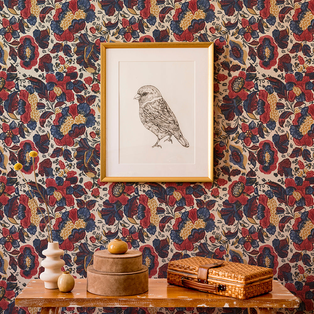 Introducing "Kensington," a stunning wallpaper that brings vintage botanical woodblock print motifs to the forefront, showcasing the timeless beauty of traditional craftsmanship. Each element of this design is a testament to the art of hand-done processes, where the intricate details and subtle imperfections of the woodblock technique are celebrated and preserved.