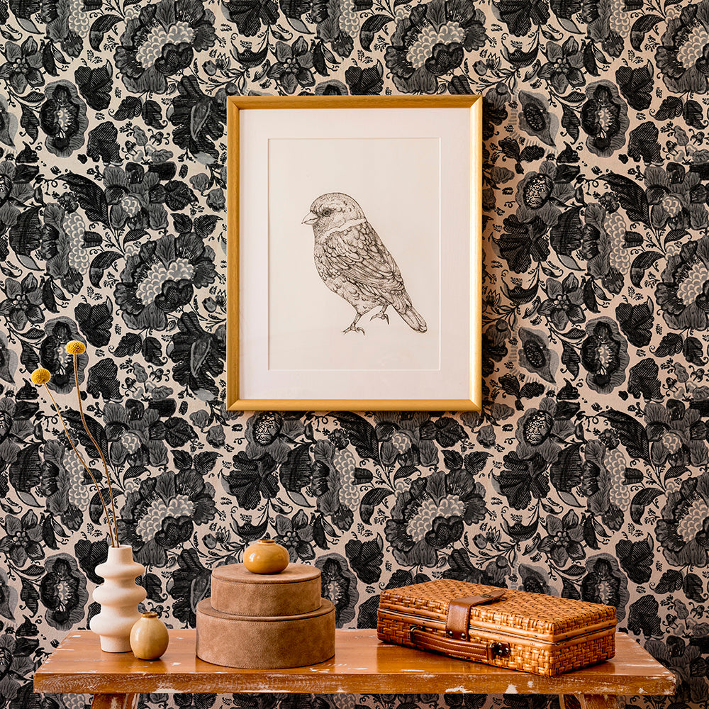 Introducing "Kensington," a stunning wallpaper that brings vintage botanical woodblock print motifs to the forefront, showcasing the timeless beauty of traditional craftsmanship. Each element of this design is a testament to the art of hand-done processes, where the intricate details and subtle imperfections of the woodblock technique are celebrated and preserved.