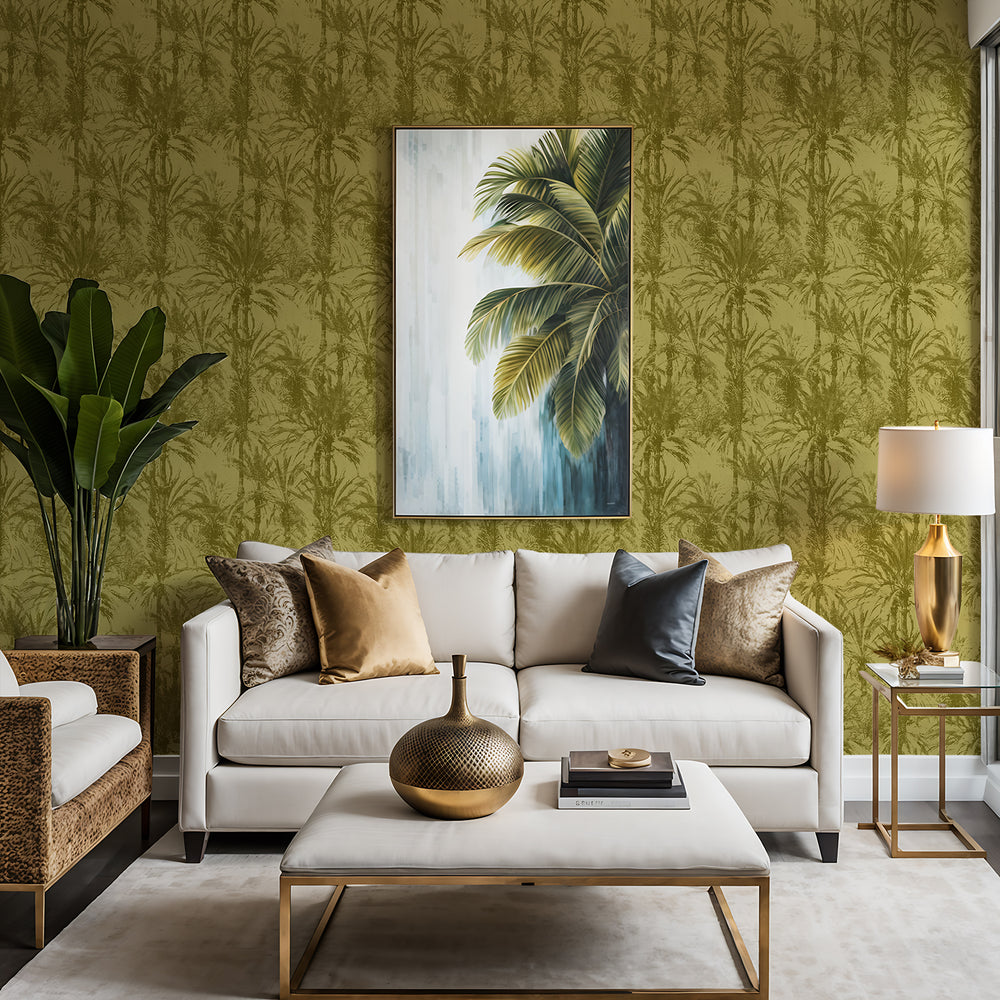 As you immerse yourself in the ambiance created by this unique wallpaper, you can almost feel the sun's heat radiating from the sand and catch the scent of exotic spices carried on the breeze. "The Palm" is more than just wallpaper; it’s an invitation to experience the mystique of the desert within the refined context of your own home. Perfect for those who appreciate high-end decor that tells a story, this pattern offers a rich tapestry of history, adventure, and artistic elegance, making it an extraordinary addition to any sophisticated interior.