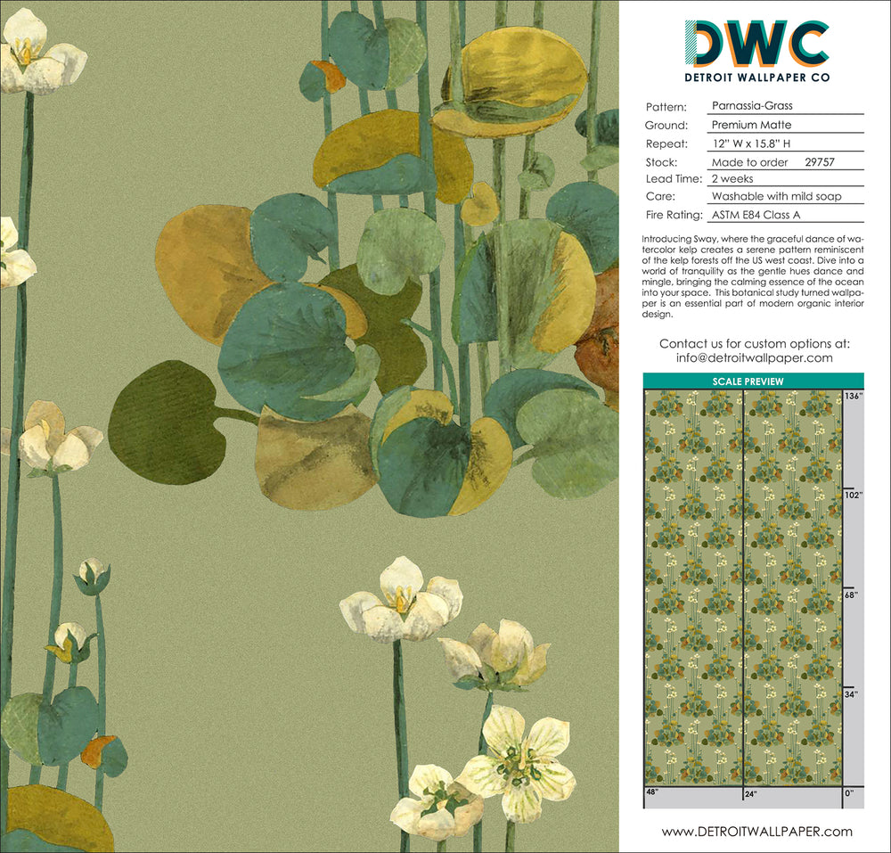 The "Parnassia" wallpaper is a celebration of the often-overlooked beauty found in the natural world, particularly in the subtle wonders that lie underfoot. This design invites you to appreciate the quiet elegance of nature, where even the smallest details are imbued with significance and charm. The pattern’s intentional design highlights the understated allure of the Parnassia plant, bringing a touch of refined botanical beauty into any space. Perfect for those with a discerning eye for design, "Parnassia" offers a sophisticated way to introduce nature’s elegance into your home.