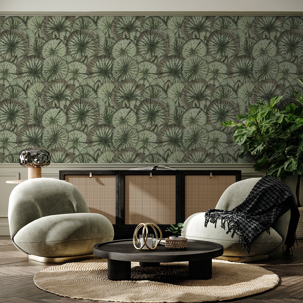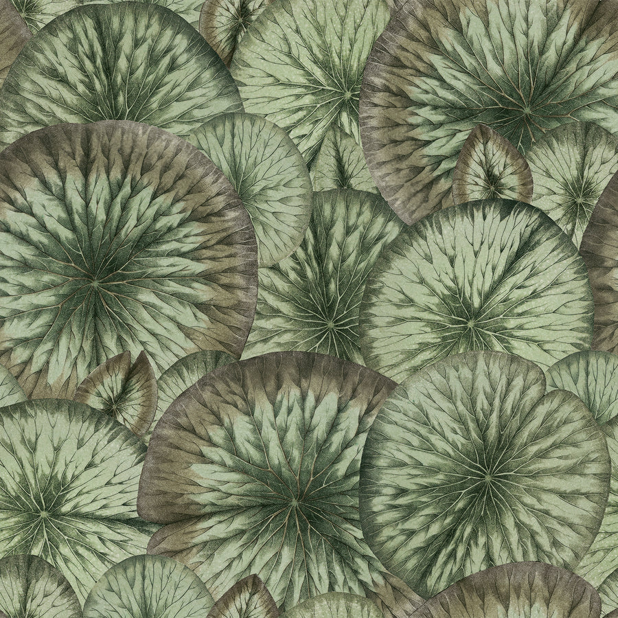 Crafted with exquisite attention to detail, "Pond" transforms the familiar motif of lily pads into a sophisticated work of art. The subtle interplay of shapes and layering creates a tactile quality that invites you to explore its intricacies. Available in four soft, classic colorways—each in harmonious green tones and complementary hues—this wallpaper evokes a serene and refined atmosphere, making it a perfect choice for interiors that seek to combine history with modern sensibilities.