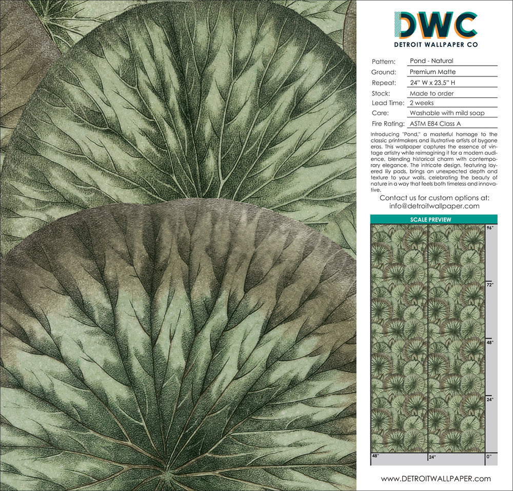 Whether you're looking to enhance a contemporary arts and crafts home or add a layer of sophistication to an eclectic design scheme, "Pond" offers a sense of quiet elegance and timeless beauty. Its versatile appeal allows it to fit seamlessly into various spaces, from traditional to modern. By reinventing a vintage aesthetic for the present day, "Pond" serves as a bridge between the past and the future, offering your home an air of artistry and enduring style.