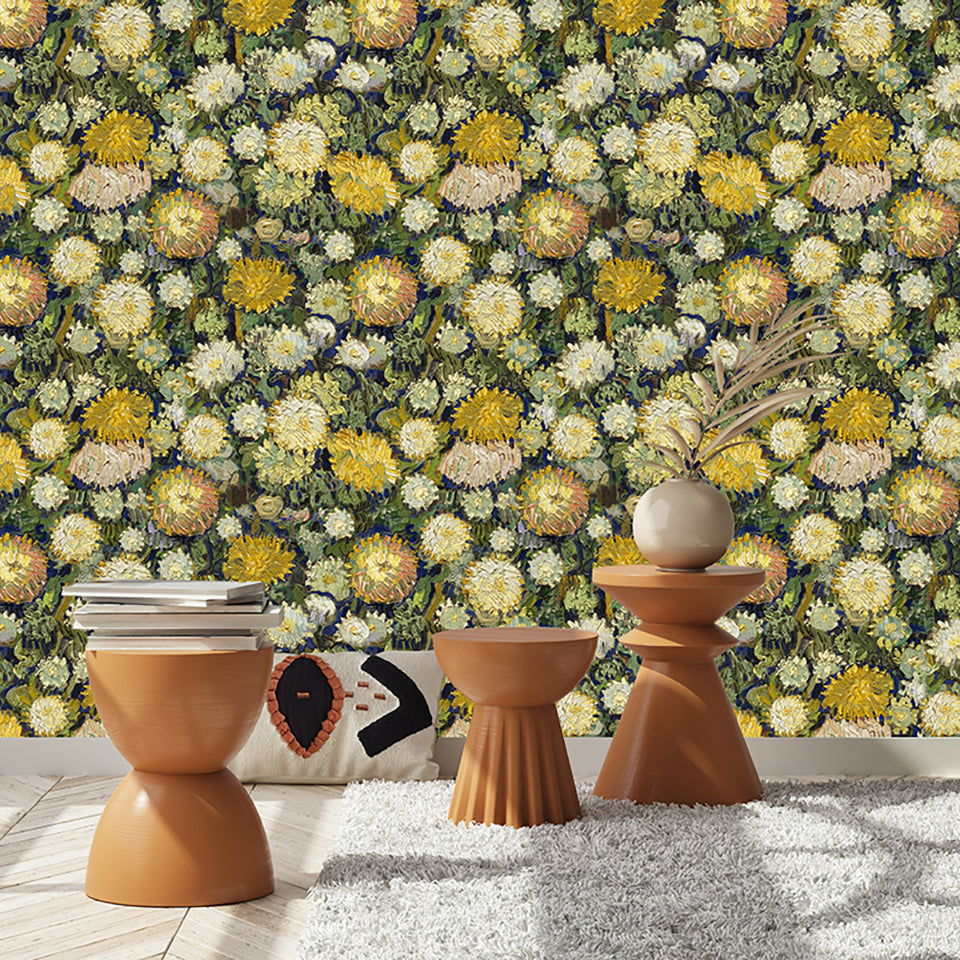 The dynamic interplay of color and movement creates a vibrant, yet harmonious atmosphere, making this wallpaper an extraordinary addition to any room. Ideal for those who seek to infuse their interiors with a touch of artistic flair and sophistication, this Van Gogh pattern is more than just a decorative element; it is a statement of taste and cultural appreciation.