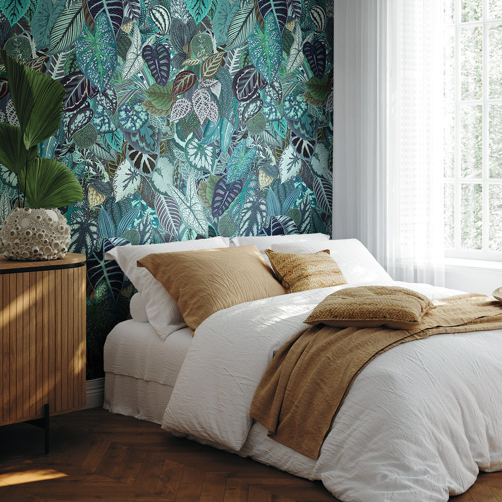 This design celebrates the beauty of organic forms with a modern twist, creating a dynamic interplay of texture and detail that adds visual depth to any space. The intricate veins and subtle color variations of each leaf create a layered and textured effect, making "Variegated" more than just a wallpaper—it’s an immersive work of art that demands attention. The maximalist approach in this design ensures that no corner of the wall is left untouched, offering a rich tapestry of botanical beauty.