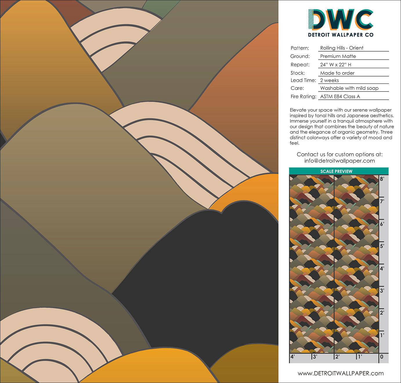 Elevate your space with our serene wallpaper inspired by tonal hills and Japanese aesthetics. Immerse yourself in a tranquil atmosphere with our design that combines the beauty of nature and the elegance of organic geometry. Three distinct colorways offer a variety of mood and feel.