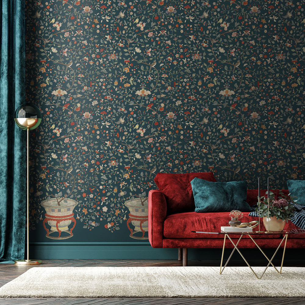 Forget the fields from Oz that will put you to sleep; our Poppy wallpaper pattern will invigorate your space. Oversized poppies blossom up your wall, supported by vertical stripes created from linear graphic stems. There’s no place like home to showcase this bold design.