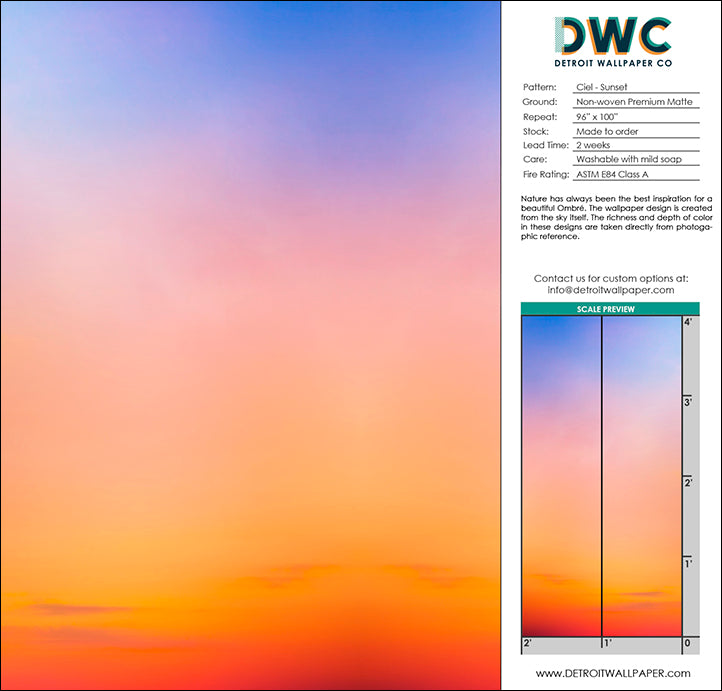 Nature has always been the best inspiration for a beautiful Ombré. This wallpaper design is created from the sky itself. The richness and depth of color in these designs are taken directly from photographic reference.