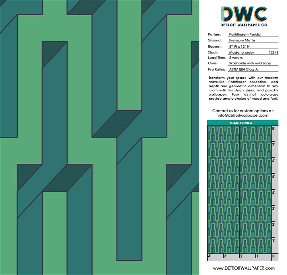 Elevate your interior with our sophisticated "Pathfinder" wallpaper, a modern maze-like pattern that embodies the intricate fusion of M.C. Escher's vision and Art Deco elegance. This stylish contemporary design adds depth and geometric dimension to any room, creating an atmosphere of refined luxury. Available in four distinct colorways, "Pathfinder" offers a versatile selection to perfectly complement and enhance your unique aesthetic.