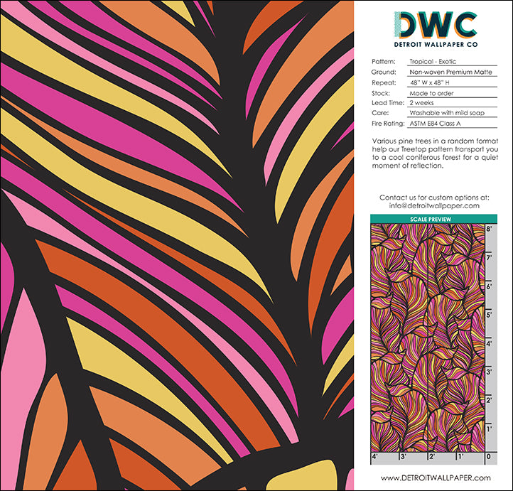 Our pattern Tropical is the first step in transforming your space into your own private getaway. Let the oversized foliage found in the pattern whisk you away to more exotic locales while at the same time helping you to describe your personal aesthetic.
