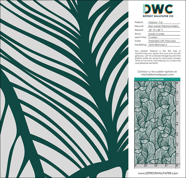 Our pattern Tropical is the first step in transforming your space into your own private getaway. Let the oversized foliage found in the pattern whisk you away to more exotic locales while at the same time helping you to describe your personal aesthetic.