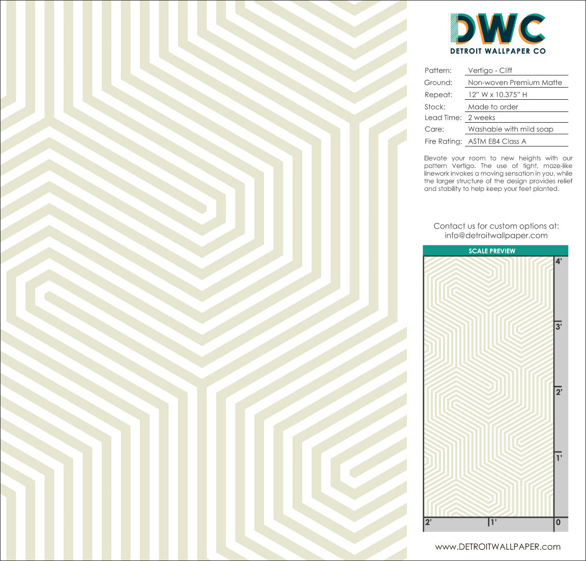• Produced in the USA on either easily strippable non-woven matte wallpaper that requires paste, or eco-friendly peel and stick wallpaper. Class A safety-rated.