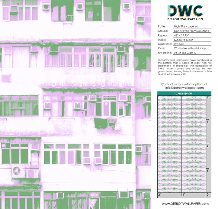 Humanity and technology have combined in this pattern that is based off older high rise apartments in Shanghai. The complexity of these homes stacked one on top the next generates a pleasing flow of shape and subtle deviation between units.