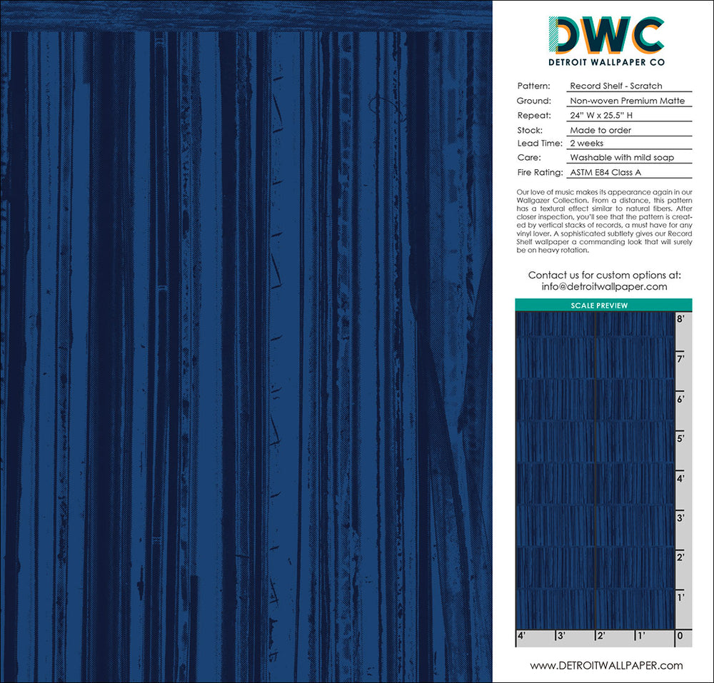Our love of music makes its appearance again in our Wallgazer Collection. From a distance, this pattern has a textural effect similar to natural fibers. After closer inspection, you’ll see that the pattern is created by vertical stacks of records, a must have for any vinyl lover. A sophisticated subtlety gives our Record Shelf wallpaper a commanding look that will surely be on heavy rotation.