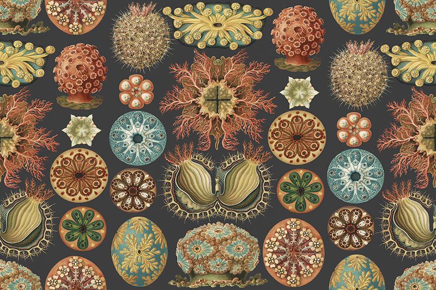 A study of numerous Ascidiacea, sub-phylum Tunicata, more commonly known as sea squirts - marine invertebrates. Mural measures 12.5' (150") wide, by 8.33' (100") tall, printed in 3 panels.