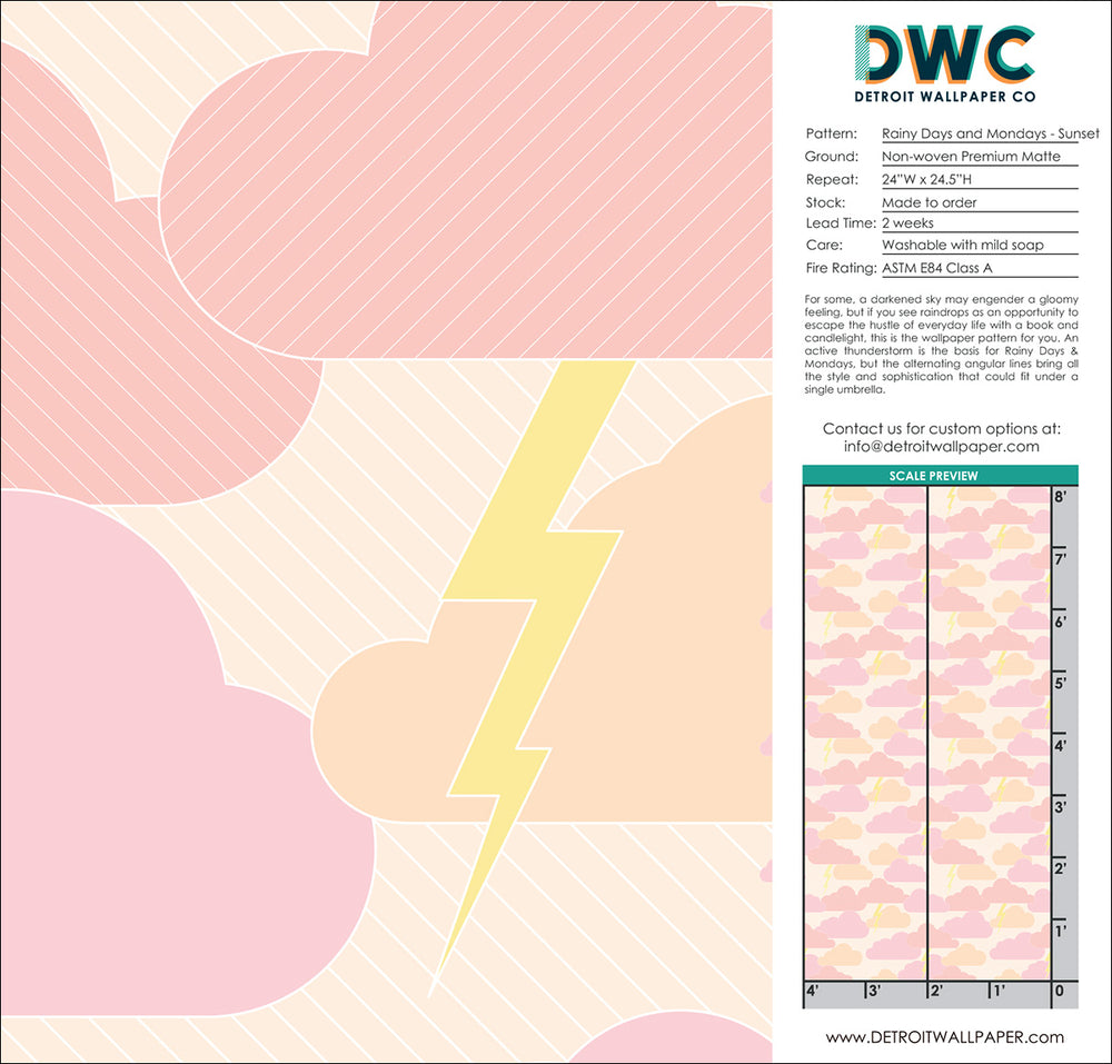 For some, a darkened sky may engender a gloomy feeling, but if you see raindrops as an opportunity to escape the hustle of everyday life with a book and candlelight, this is the wallpaper pattern for you. An active thunderstorm is the basis for Rainy Days & Mondays, but the alternating angular lines bring all the style and sophistication that could fit under a single umbrella.