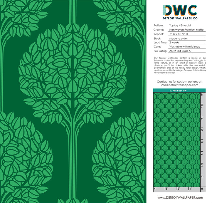 Our Topiary wallpaper pattern is iconic of our Botanical Collection, representing man’s struggle to tame nature, all in an effort of beauty. From a distance you’ll be taken with the modernistic geometrical orbs of this trendy floral design, which, up close, reveal leafy foliage. Ornamental shrubbery never looked so cool.